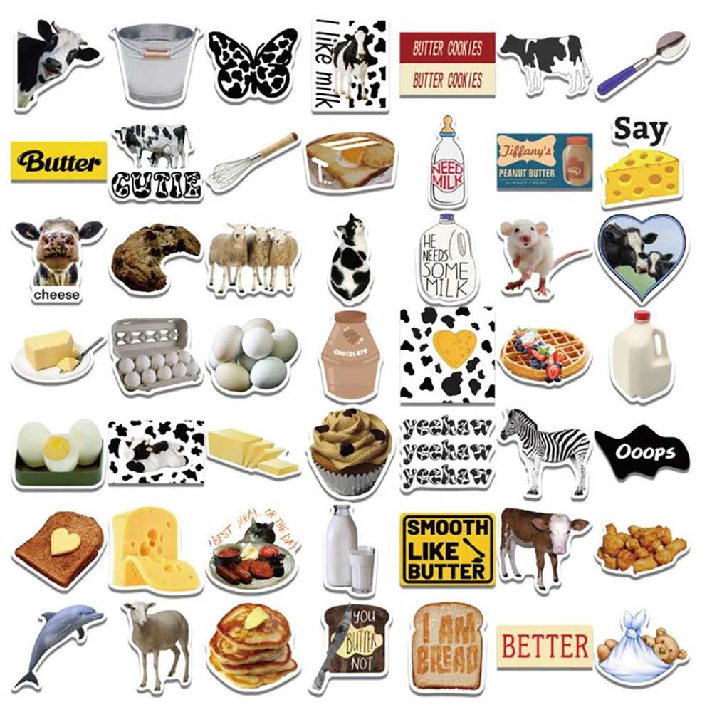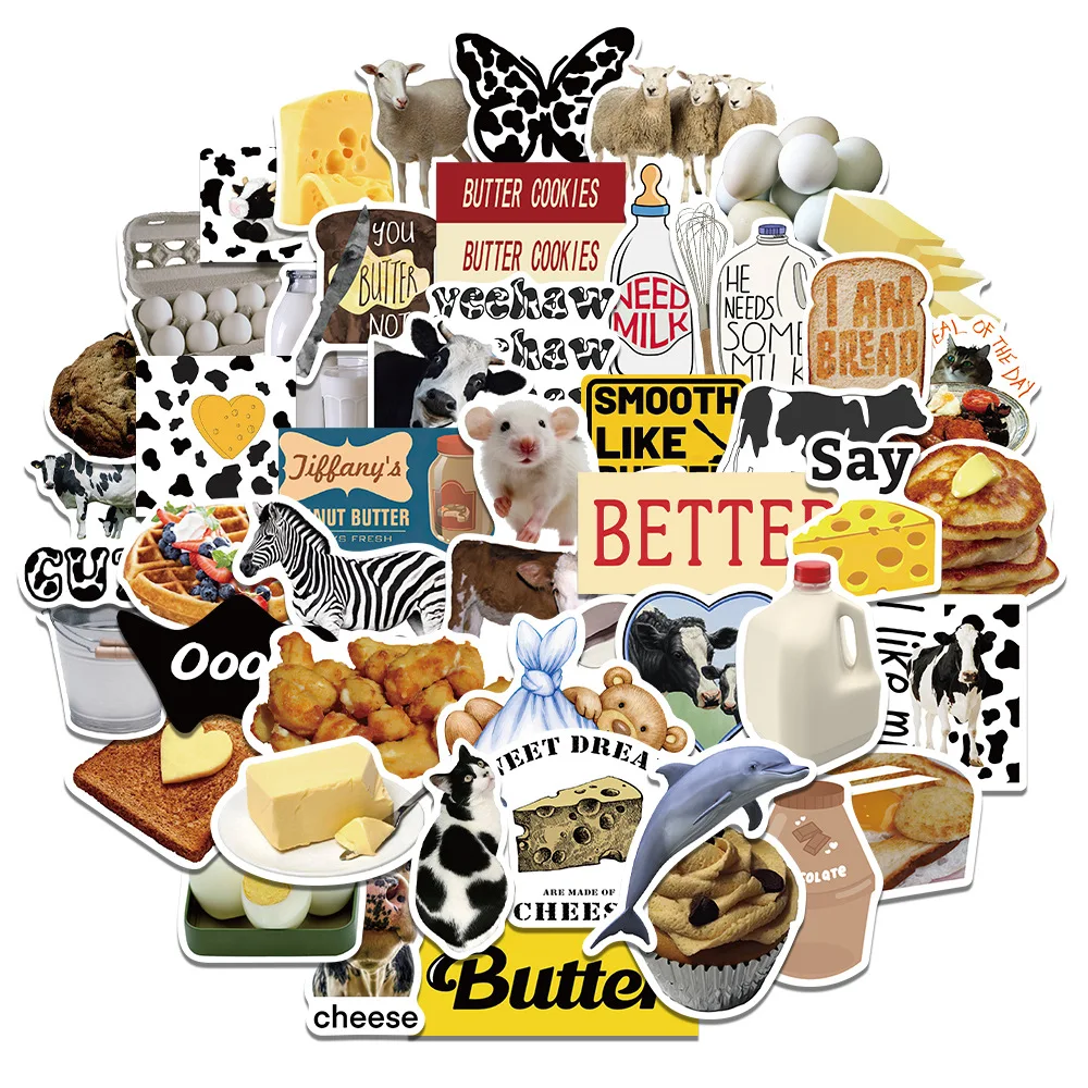 Стикеры в стиле INS смешанные с изображением сливочного молока и еды, стикеры в стиле граффити с чемодан для скейтборда, наклейки в виде чемоданов с изображением холодильника, стикеры, наклейки, 103050 шт.