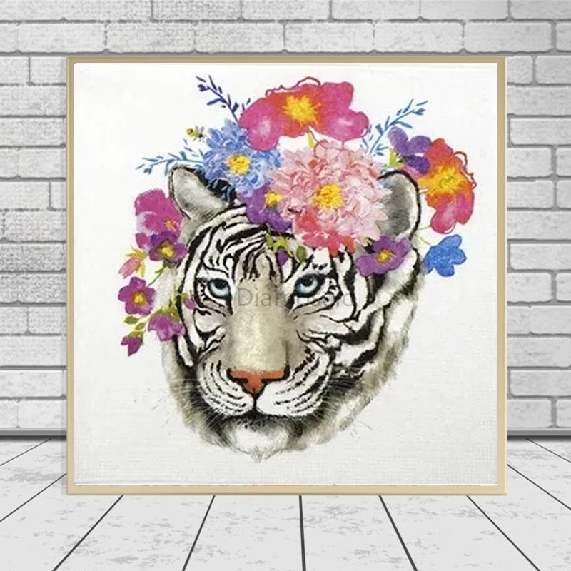 Алмазная 5D картина, алмазная вышивка, животные, мозаика сделай сам, картина с полным сверлением из смолы, белая Тигровая краска по номерам, украшение для дома