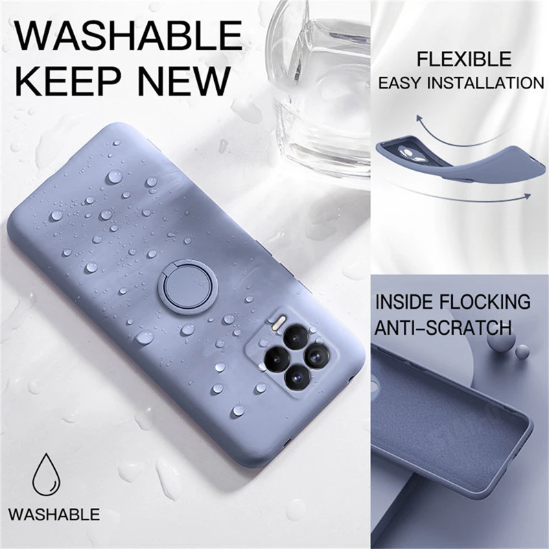 Жидкий силиконовый чехол с кольцом-держателем для телефона Oppo Realme 8 7 Pro 4g 5g 7i Gt Neo Master Narzo 30a C21, оригинальный мягкий чехол-подставка