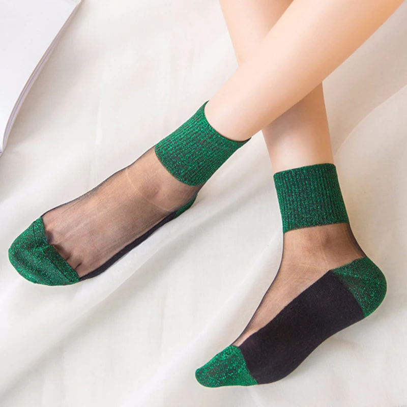 Носки женские ультратонкие прозрачные с блестками, модные шелковые красивые кружевные блестящие эластичные короткие, 1 пара, на лето