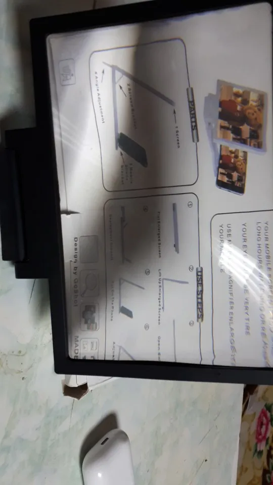 Экран получили. Всё как в описании. Увеличивает хорошо. Будем детям мультики теперь давать смотреть через него с телефона. Можно хоть подальше отставить)) к покупке рекомендую.