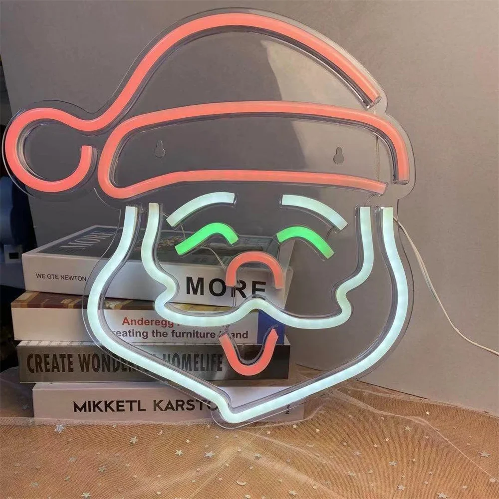 Неоновый светодиодный светильник Санта-Клаус, Рождественское украшение, светильник для фестиваля вечерние, комнаты, магазина, детский подарок с Usb-разъемом