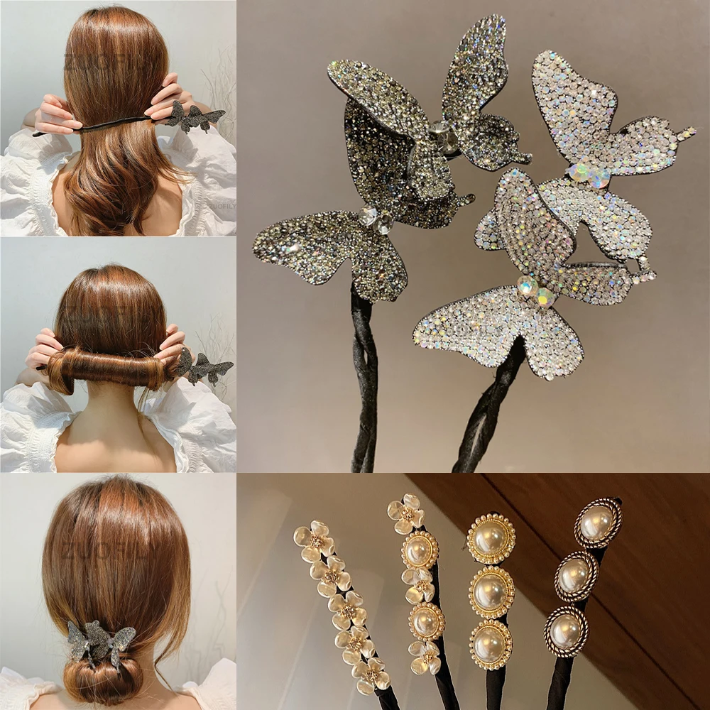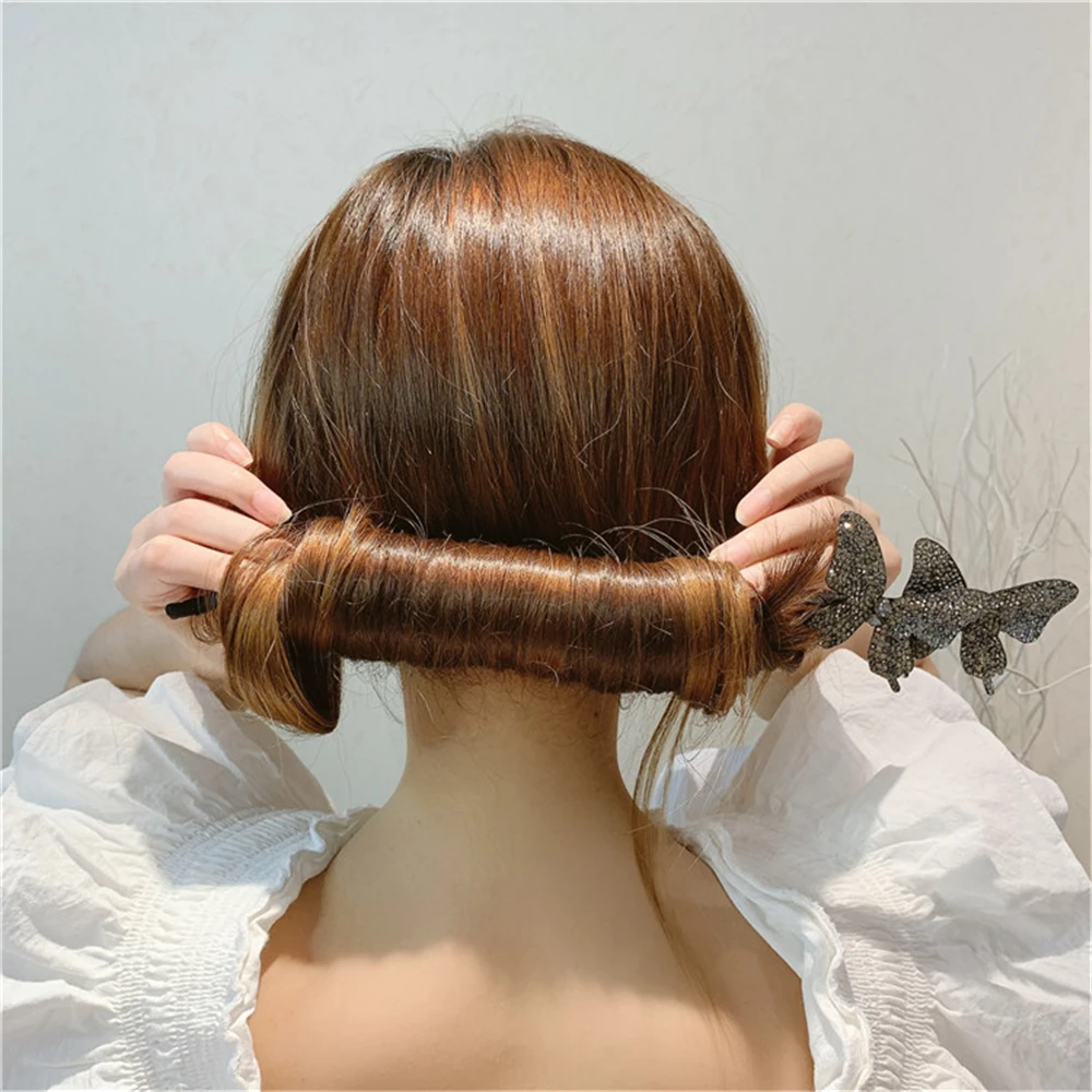 Приспособление для укладки волос сделай сам, инструмент для плетения волос, ленивые вьющиеся волосы, заколка для волос в виде бабочки, цветочные бутоны, искусственные волосы