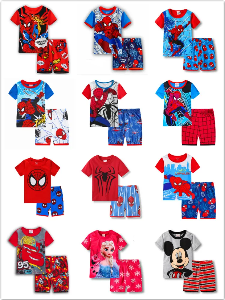 Летняя детская одежда, пижамный комплект, футболка с коротким рукавом и шорты, детские пижамы для мальчиков и девочек, пижама с мультяшным человеком-пауком, детская одежда для сна