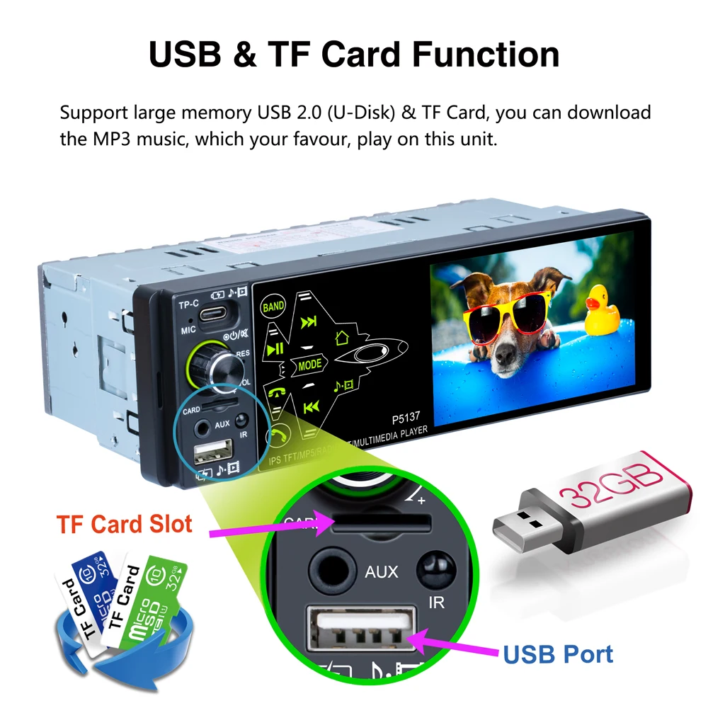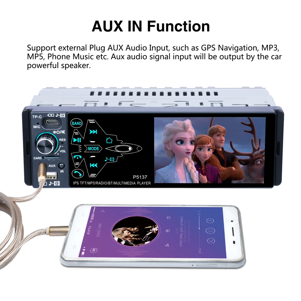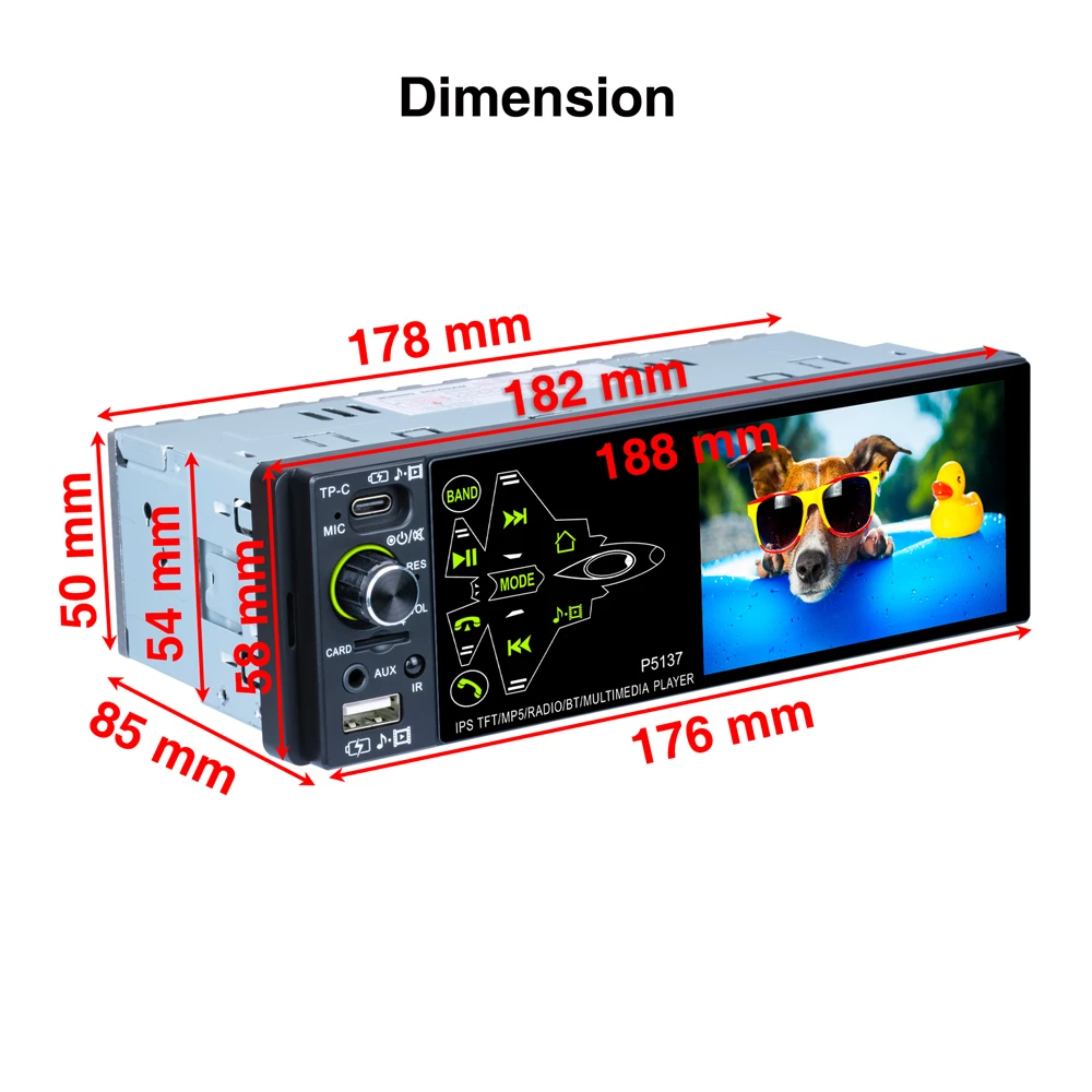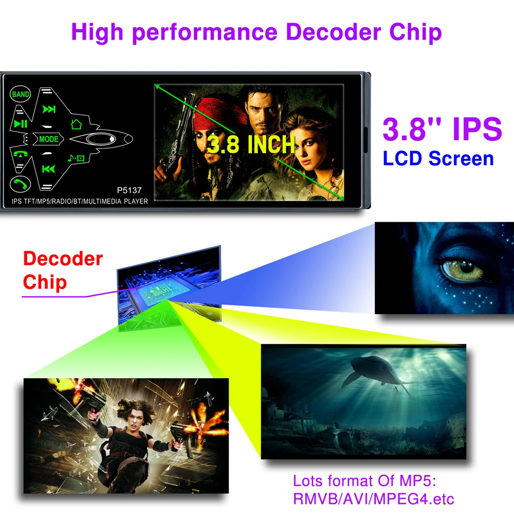 Описание:3,8 дюймов IPS 2.5D емкостный сенсорный экран.Подсветка 7 цветных кнопок.TP-C функции.2.5D изогнутое стекло.Поддержка формата воспроизведения аудио MP3/WMA/WAV/FLAC/APP и т. Д.Поддержка формата воспроизведения видео RMVB/RM/VOB/MP4/MOV/AVI /3GP и т. д.С передним портом USB2.0 и слотом для карт TF.Функция BT, бесплатный звонок и BT музыка.Усилитель на полевых МОП-транзисторах: 50 Вт x 4 Максимальная выходная мощность.Полный ИК-пульт дистанционного управления.Отключение питания с функцией автоматического хранения памяти в режиме радио или TF/USB.Функция часов.Функция отключения звука.Настройка эквалайзера/4 настройки баланса динамика.Функция переднего AUX in.Односторонняя функция видеовыхода.Две функции аудиовыхода RCA.Функция одностороннего ввода видео.Функция ввода камеры заднего вида (без камеры).Вход заднего микрофона.Выход сабвуфера.Функция управления рулем.Пульт управления рулем.Два usb-порта (одна воспроизведение музыки, одна поддержка быстрой зарядки телефона).Характеристики:Товар Название:Тип: 1 DINРабочее напряжение: DC12VСопротивление динамика: 4 ОмМаксимальная мощность: 50 Вт * 4Регулятор громкости: +/ -8 дБ (бас 100 Гц, ВЧ 10 кГц)Размер: 188x85x58 ммДиапазон настройки FMAM RDSДиапазон настройки: 87,5-108 МГцЕсли частота: 10,7 МГцПрименимая Чувствительность: 15 дБSNR: 50 дБСтерео разделение: 30 дБЯзык: испанский, португальский, русский, итальянский, немецкий, французский, польский, турецкий, чешский, традиционный китайский, венгерский, японский, английский, китайскийПримечание:-Возможны небольшие погрешности в размере при ручном измерении.-Отклонение цвета может отличаться из-за различных настроек монитора, пожалуйста, поймите.Упаковочный лист