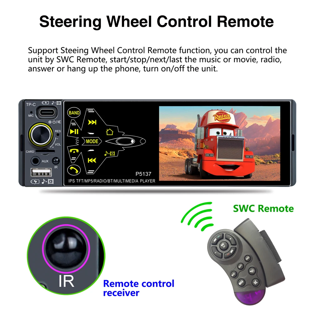 1Din 3,8 дюймов 2.5D автомобильное радио MP5 плеер полный сенсорный экран 2 USB RDS FM стерео Bluetooth-Совместимо радио с камерой заднего вида