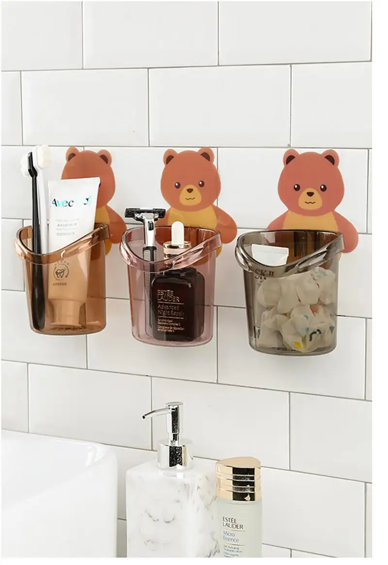 Настенный держатель для зубных щеток, Не оставляющий следов, стойка для хранения зубной пасты в ванной комнате, мультяшный бытовой Органайзер для всякой всячины, аксессуары