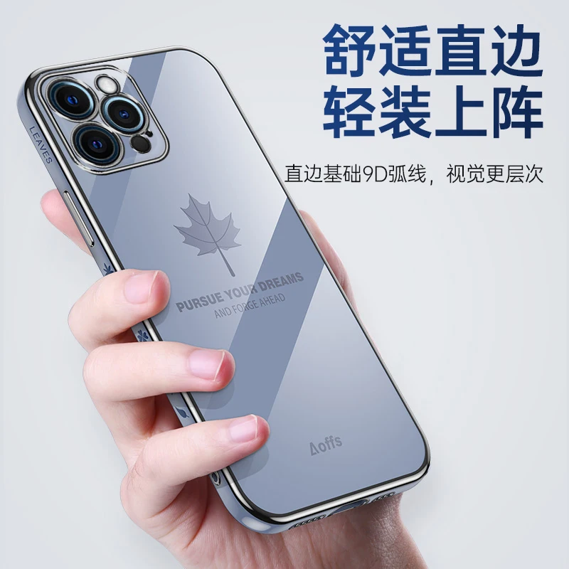Модный чехол из жидкого силикона с прямым краем и Кленовым листом д...