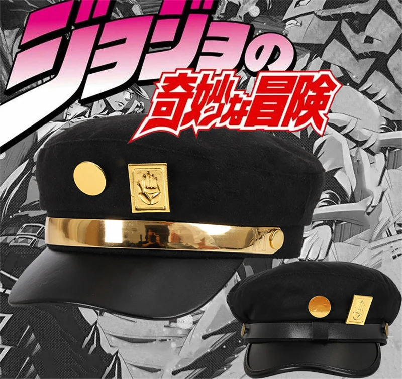 Кепка аниме невероятные приключения Джоджо, аксессуар для косплея, армейская фуражка Джоджо Куджо Джозефа в стиле милитари, шапка Джоджо, головные уборы, значки