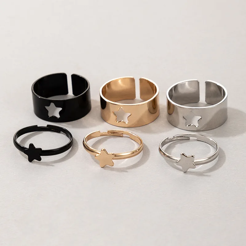 Набор колец, 6 колец, с бабочкой, сердцем, кольца для мужчин и женщин