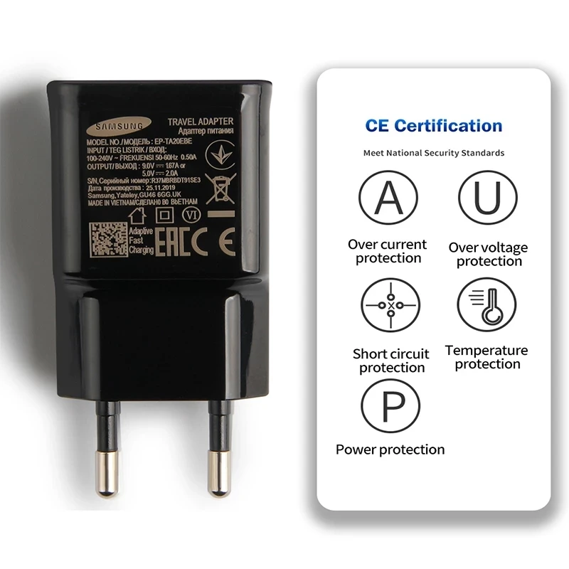 Samsung 9V 1.67A быстрое зарядное устройство адаптер питания быстрая зарядка Тип C кабель для Galaxy S10 S8 S9 Plus A30 A40 A50 A70 A60 note 10 8 9Особенности товара:-- Выход: 9V 1.67A 5V2A-- Штепсельная вилка европейского стандарта-- Кабель типа C 120 см-Цвет: черный/белый