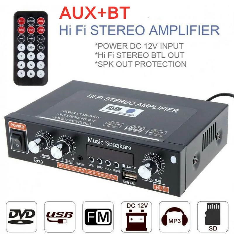 Цифровой усилитель G30 800 Вт для автомобиля и дома, Hi-Fi Bluetooth стерео аудио AMP FM MP3 AUX USEU 2-канальный с дистанционным управлением