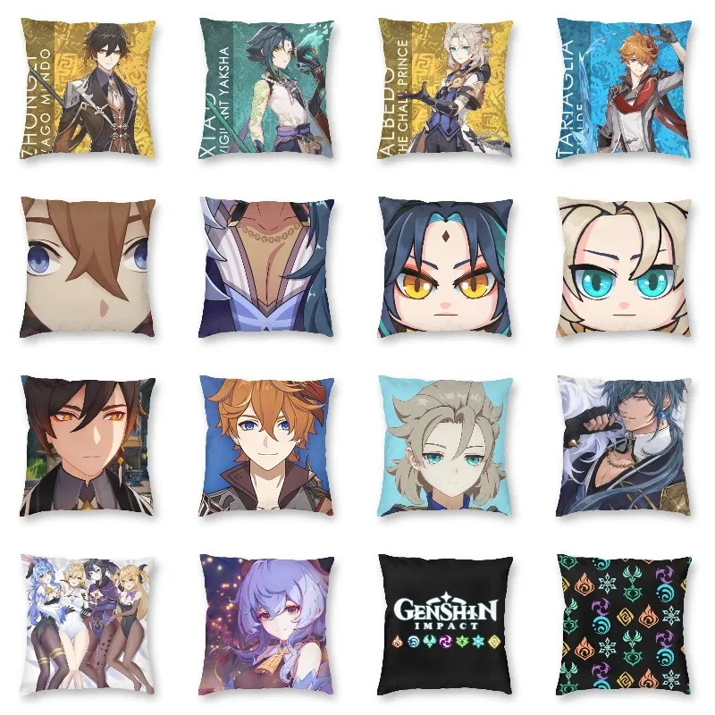 Аниме игра Genshin ударный чехол для подушки с принтом Zhongli Childe Albedo чехол для дивана сиденья наволочка для украшения дома