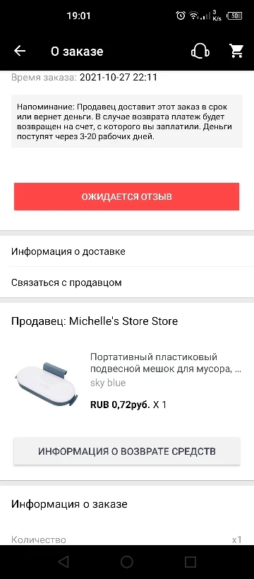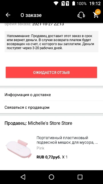 Время обработки заказа закончилось и заказ закрыт. Жду возврата денег. Продавец и не собирался ничего отправлять, просто накручивал количество заказов за счёт большой скидки. На 12.11.2021 все товары в магазине удалены. Надеюсь этот продавец больше не вернётся, не его это призвание. Не рекомендую.