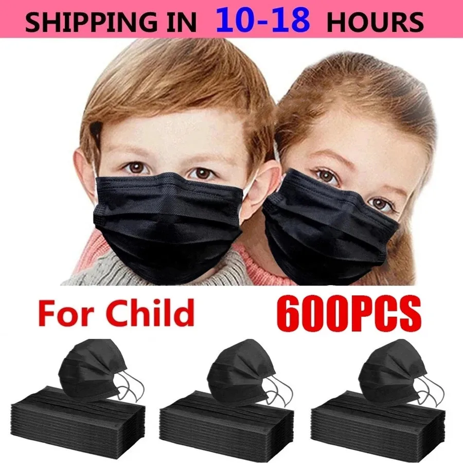 Быстрая доставка! Детская одноразовая маска для лица, черная 3-слой...