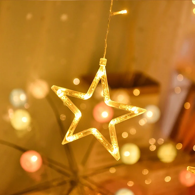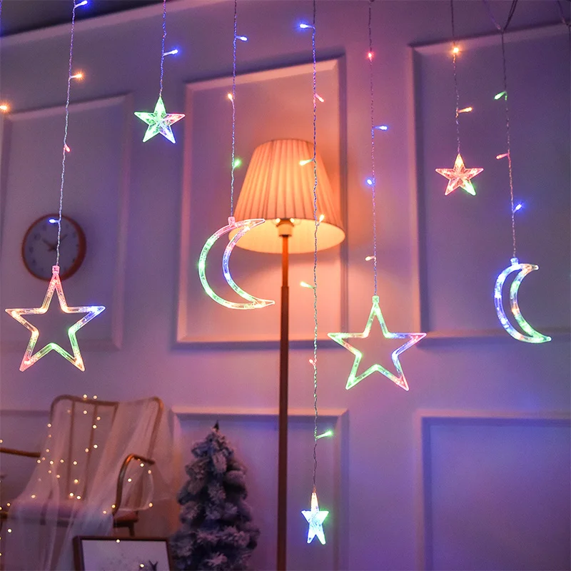 Рождественская гирлянда со звездами и луной, гирлянда-занавеска, светодиодные светильники, сказочные огни на Рождество, Новый Год, украшения для дома на окно