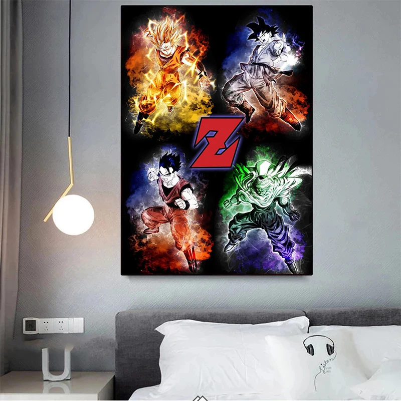 Плакат в стиле японского аниме, мультфильм Dragon Ball, холст, наст...