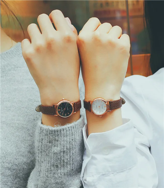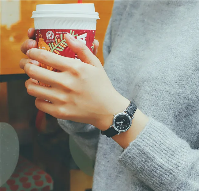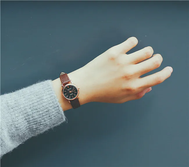 Часы наручные женские с маленьким циферблатом, модные стильные винтажные, с кожаным ремешком, 4 цвета, чёрные коричневые