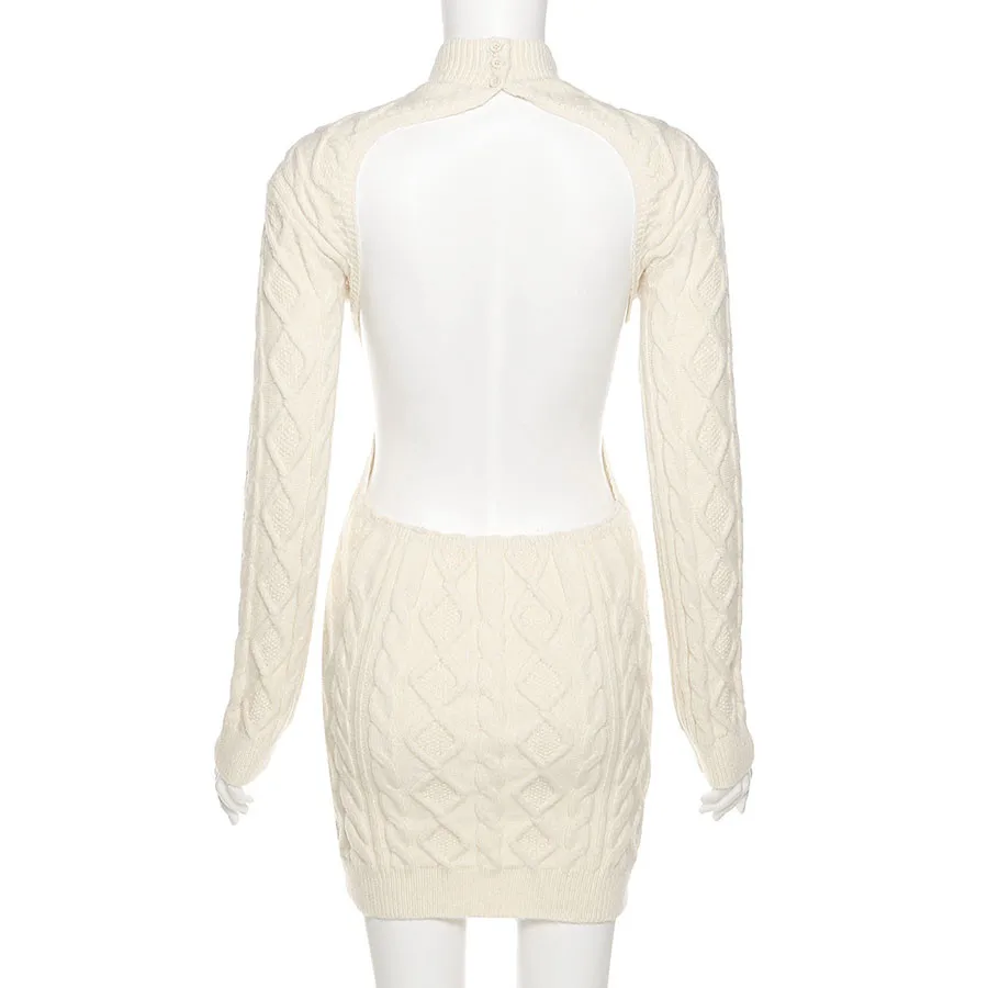 Женское винтажное трикотажное платье-свитер, облегающее элегантное платье-водолазка с длинным рукавом и открытой спиной, Осень-зима 2021