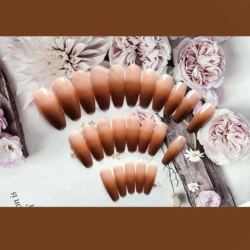 24 шт., накладные ногти с коричневым градиентом, съемный гроб, французская балерина, зимние теплые накладные ногти, накладные ногти, накладные ногти