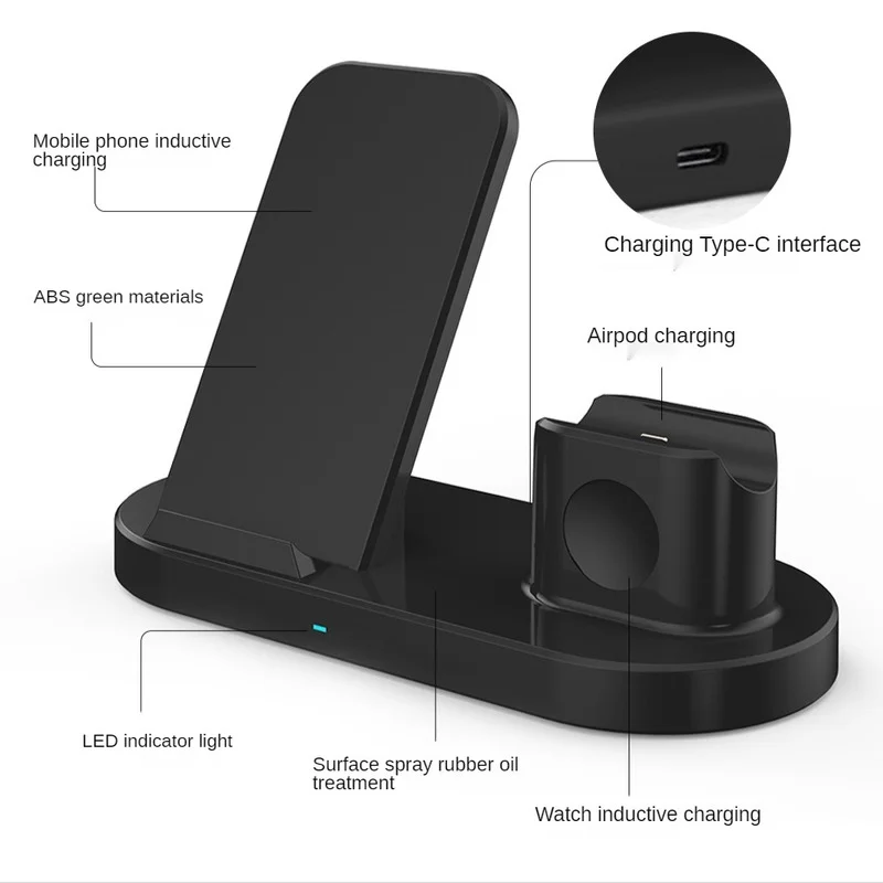 Особенности: Подставка для зарядки тонкая в сложенном виде, занимает немного пространства. Держатель зарядного устройства в сложенном виде также может регулировать металлический кронштейн, чтобы поддерживать удобный угол, который вы хотите. Горизонтальный и вертикальный экран также может работать с зарядным устройством. Только один кабель для зарядки всех ваших iPhone Apple Watch Airpods, чтобы сделать ваш рабочий стол и тумбочку более аккуратными. [Широкая совместимость]: выход беспроводного зарядного устройства 5 Вт для Airpods Pro/2 чехла для беспроводной зарядки и других устройств с поддержкой Qi, таких как настоящие беспроводные наушники; 7. Быстрая зарядка 5 Вт для продуктов apple iPhone 12/12 Pro/12 Pro Max/12 Mini/SE 2/11/11 Pro/11 Pro Max/XS MAX/XR/X/8/8 Plus; быстрая Беспроводная зарядка 15 Вт для Samsung Galaxy S21, S20, S20 +, S20 Ultra, S10, S10 Plus, S10E, S9 , S9Plus, Note 20, Note 10, Note 9, Note 8, S8, S8Plus, S7, S7 edge, S6 edge , Note 5; (Примечание: 3 устройства при зарядке Используйте адаптер 9V-2A QC3.0.) Не входит в комплект [Безопаснее и проще в использовании]: эксклюзивная многофункциональная интеллектуальная технология защиты обеспечивает контроль температуры, защиту от перенапряжения, защиту от короткого замыкания. Охлаждающие отверстия на дне обеспечивают большую теплоотдачу; Кроме того, это Беспроводное зарядное устройство сертифицировано Qi, изготовлено из АБС-материала, который является огнестойким, вы можете приобрести его по гарантии. Двойная гарантия и Двойная безопасность обеспечивают вам безопасность. Чтобы получить лучший опыт, мы хотели бы, чтобы вы сняли чехол для телефона. В комплект входит: 1 * Беспроводная зарядная станция 1 * Руководство пользователя 1 * кабель USB Type - C (настенный адаптер в комплект не входит)