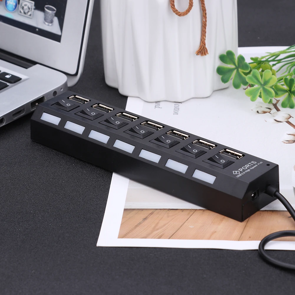 Высокоскоростной USB 2,0 разветвитель с 7 портами, адаптер ВКЛ.ВЫКЛ...