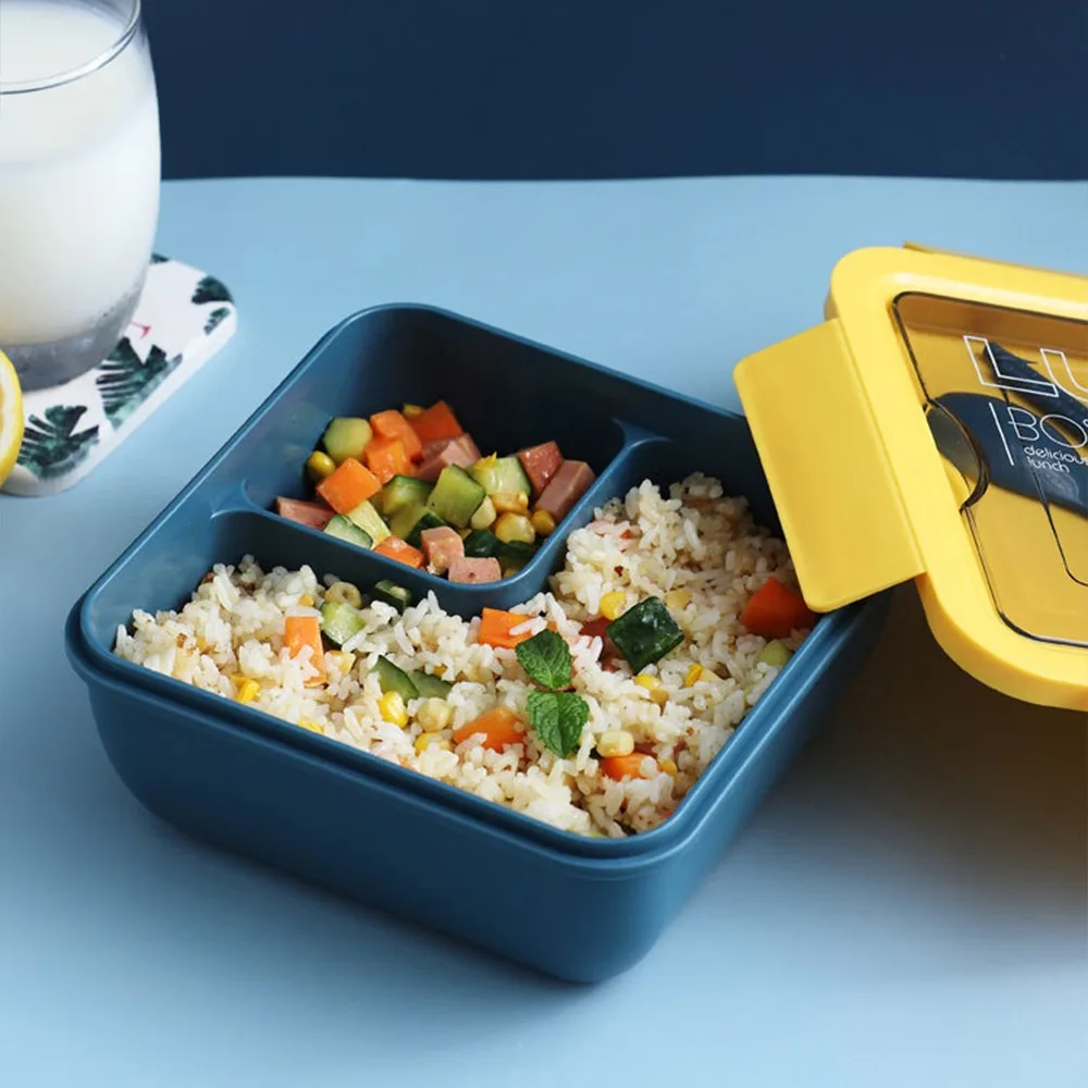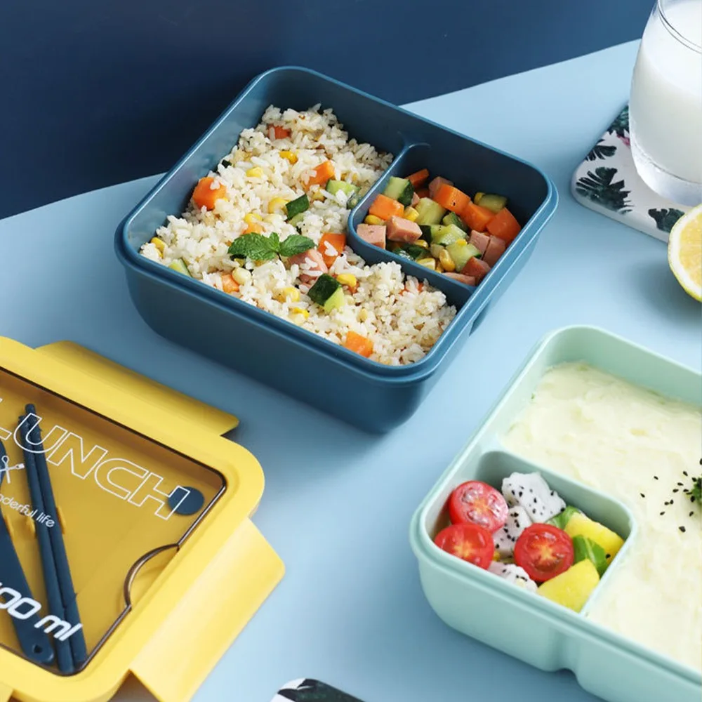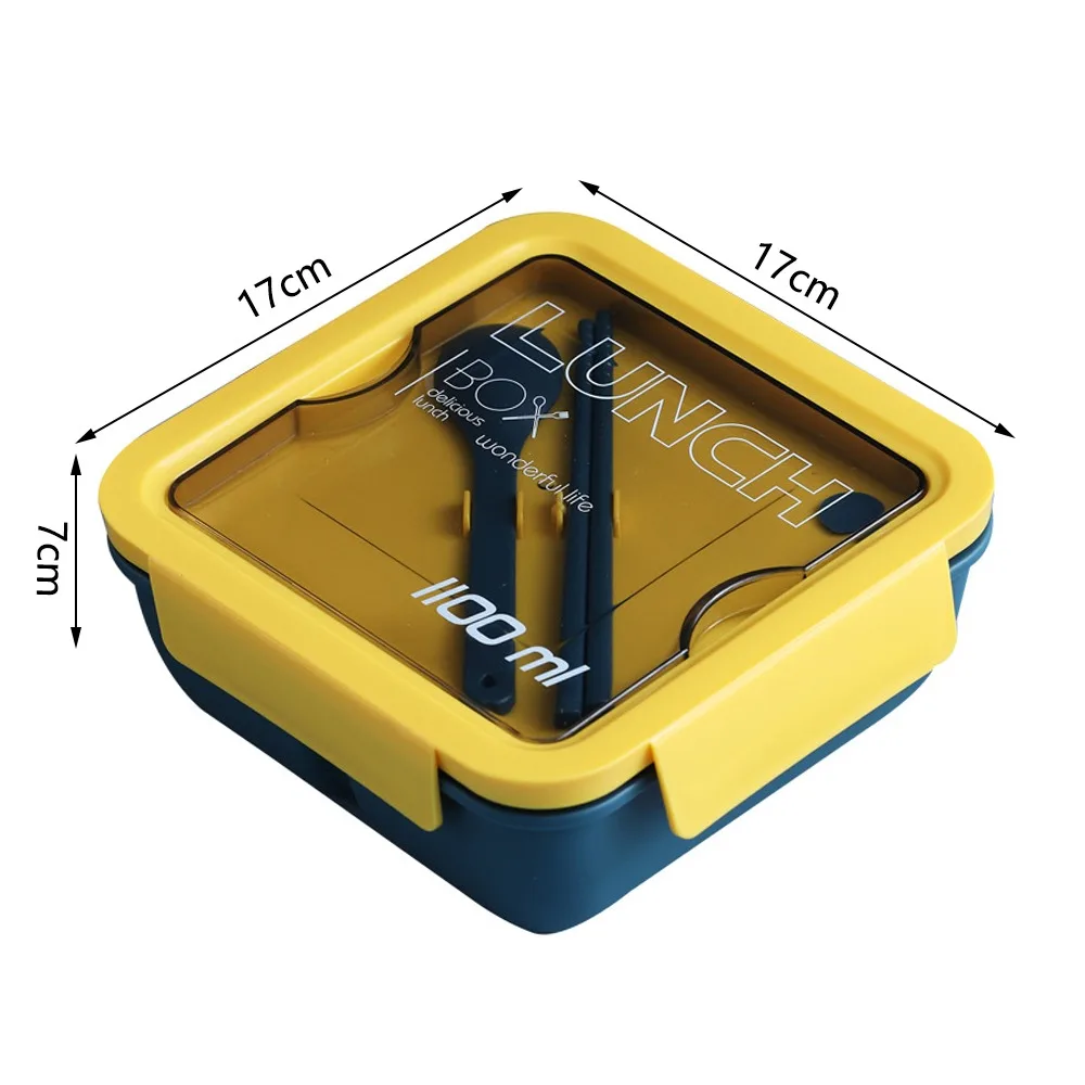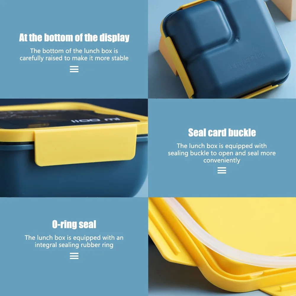 Информация о продукте:Цвет: сине-желтый, армейский зеленыйРазмер: 1100 мл, 17 × 17 × 7 смМатериал: полипропиленОсобенности: 1. Дизайн коробки для завтрака разделен на сетки, без запаха2. Встроенный слот для столовых приборов, более удобное хранение и ношение столовых приборов3. Крышка герметичная и Пылезащитная, с вентиляционными отверстиями, легко открывается и используется для отвода тепла и сохранения тепла.