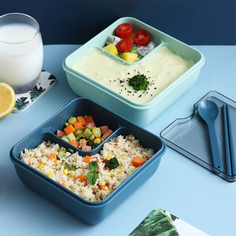 Ланч-бокс для студентов и офисных работников с посудой может подогреваться микроволновой печи