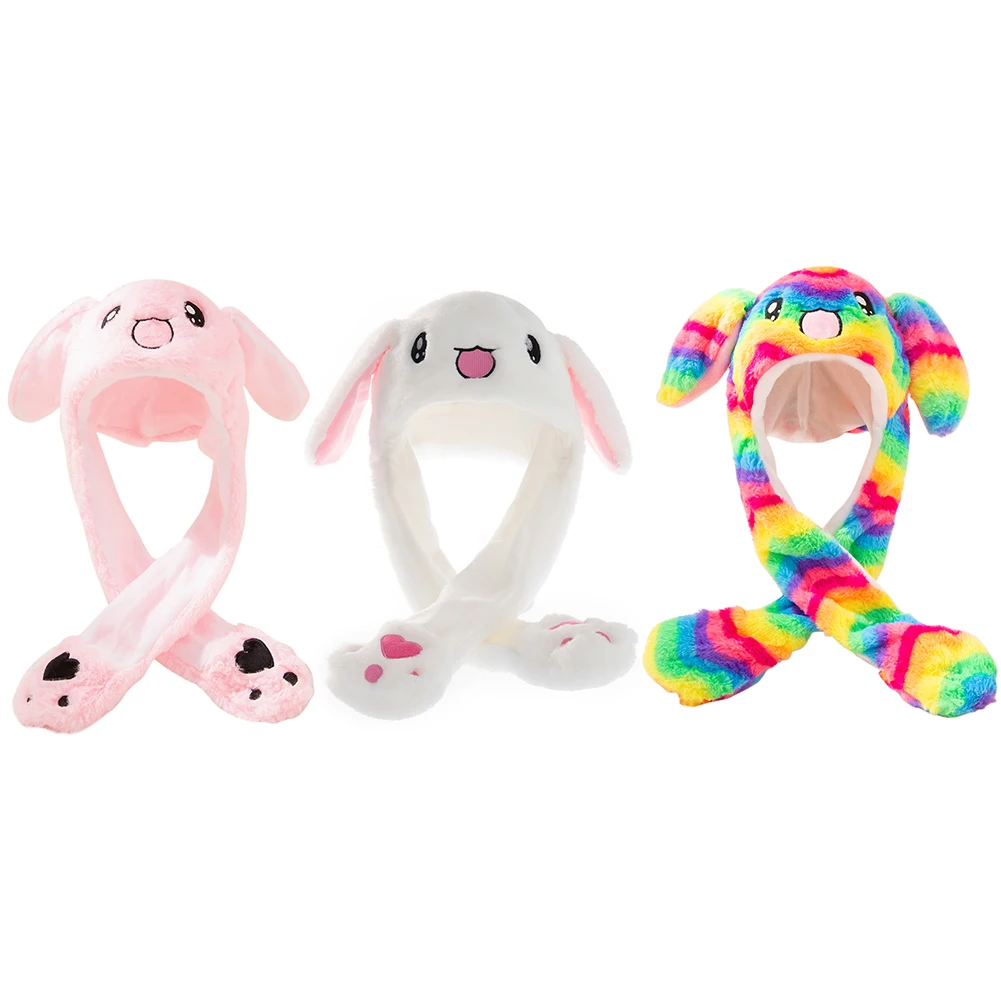 Милая мультяшная плюшевая шапка с кроликом, движущийся прыгающий кролик, головной убор, шапочка на все сезоны, для детей и взрослых, для вечеринки, забавная шапка с ушами