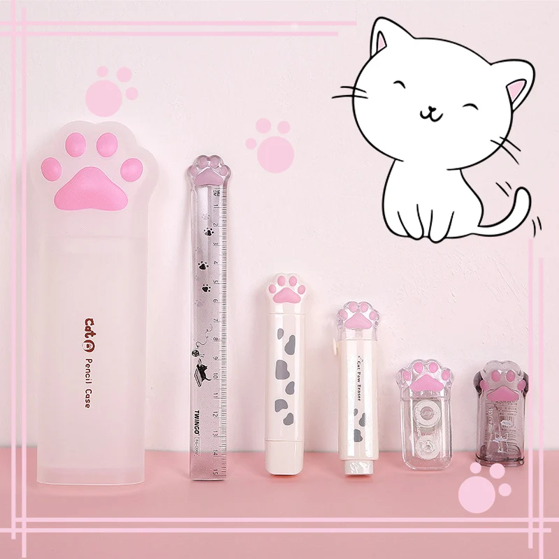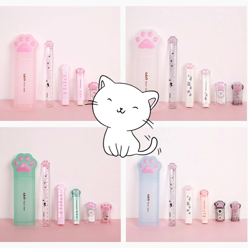 6 шт./лот, креативный набор канцелярских принадлежностей с кошачьей лапой, прозрачная коробка для ручек, точилка для карандашей, коррекция, клейкая лента, ластик, линейка для девочек, подарки