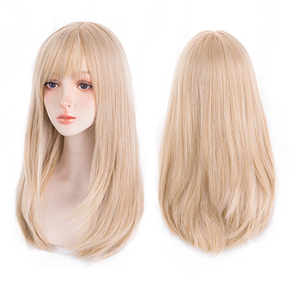 Синтетический женский парик HOUYAN средней длины с прямыми волосами, золотистые, розовые, черные, коричневые челки, парик для косплея, Лолита