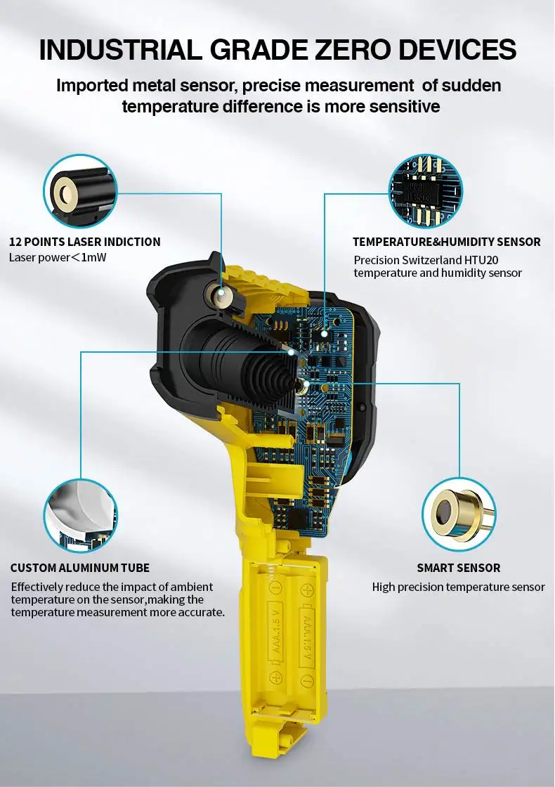 1. Бесконтактный промышленный термометр с 12 точками температуры2. Сигнал тревоги разности температур, максимальное и минимальное значение можно установить3.800B, 800C с контактным зондом, может точно измерять температуру жидкости4. Другие функции: температура плесени, температура точки росы (только для 800C)