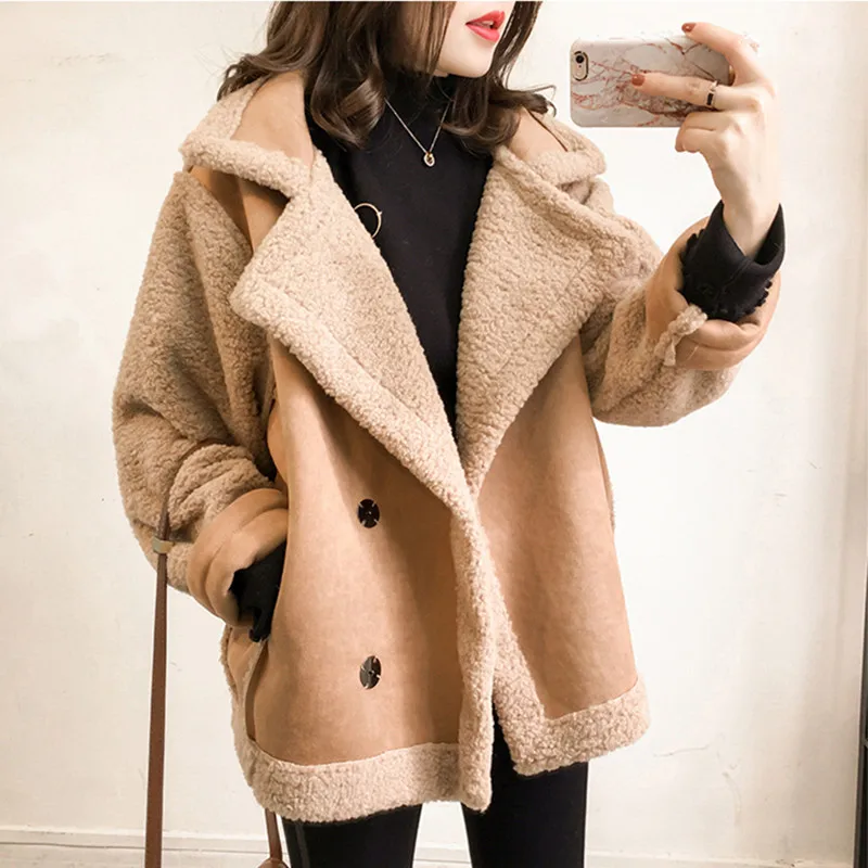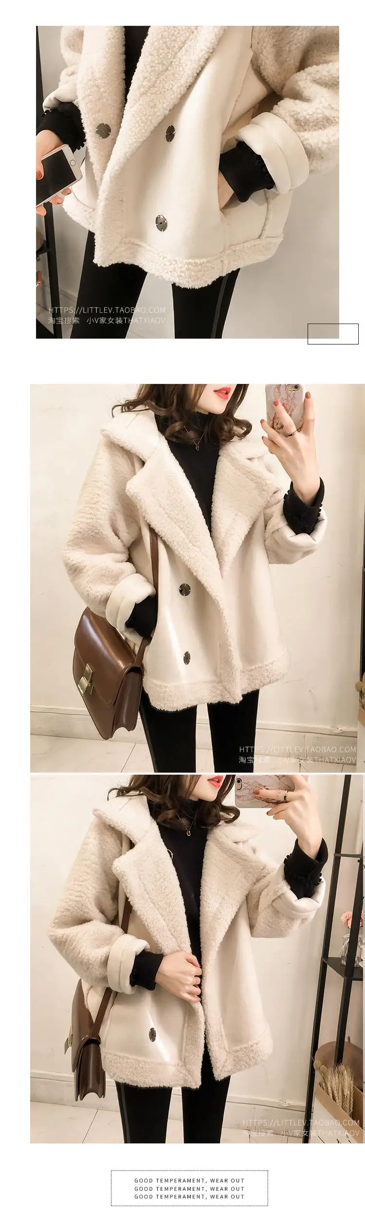 Женское пальто из овечьей шерсти, новая Корейская Свободная куртка ...