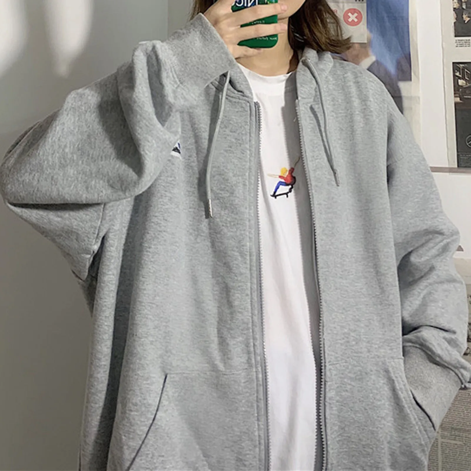 Толстовка Zipup в Корейском стиле, Женская винтажная однотонная Тол...