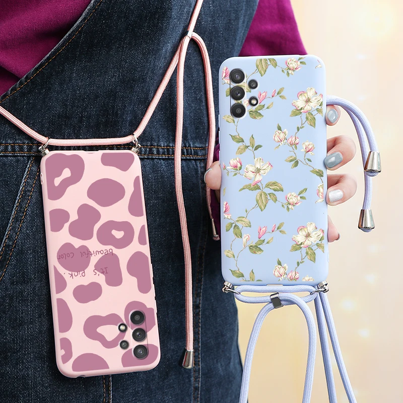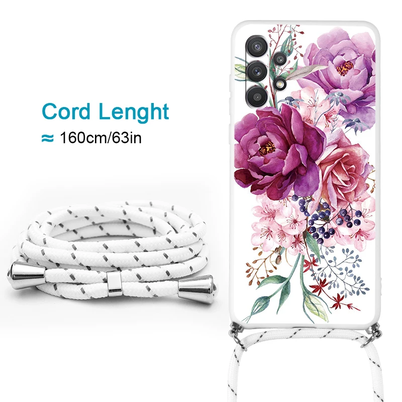 Ремешок для Samsung Galaxy A52 A52S A72 A32, чехол с цепочкой и шнурком для Samsung A 72, с цепочкой через плечо, с цветком на шнурке