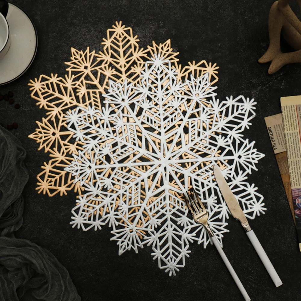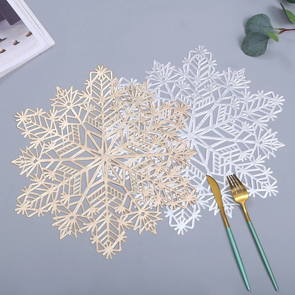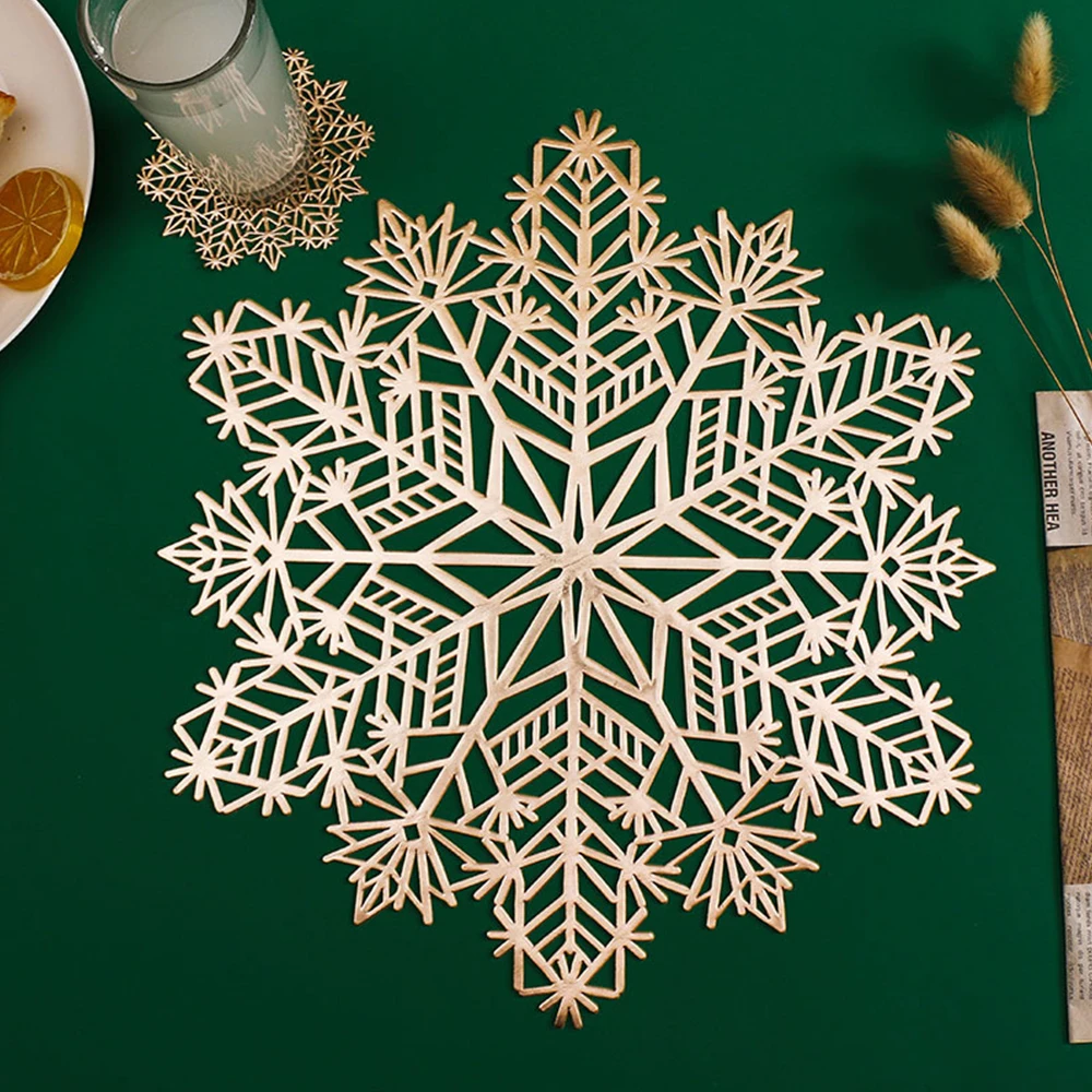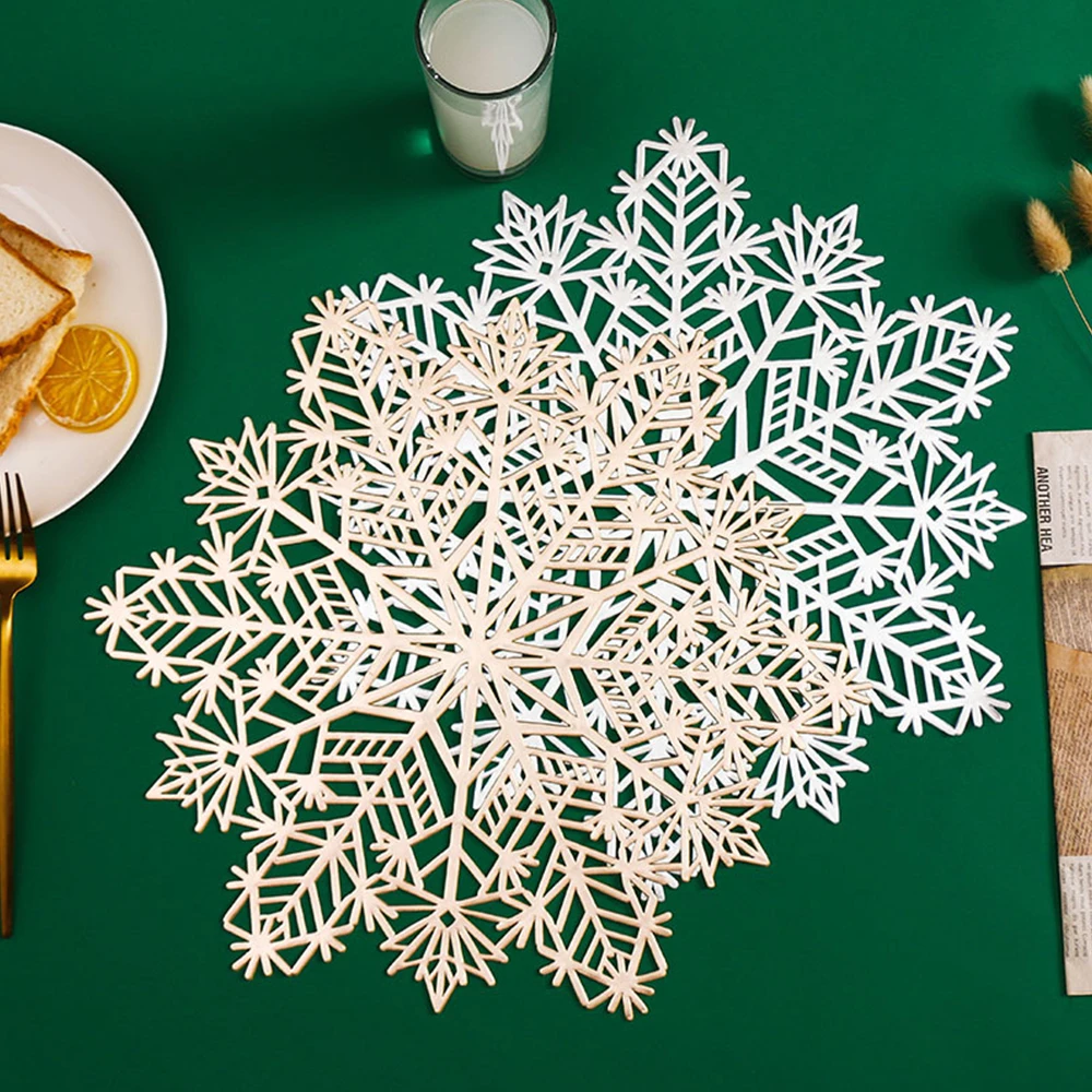 Коврик из ПВХ с отверстиями в виде снежинок, подставка под горшок, коврик для журнальных столов, посуда, подставки для чашек, Рождественское украшение, кухонные аксессуары
