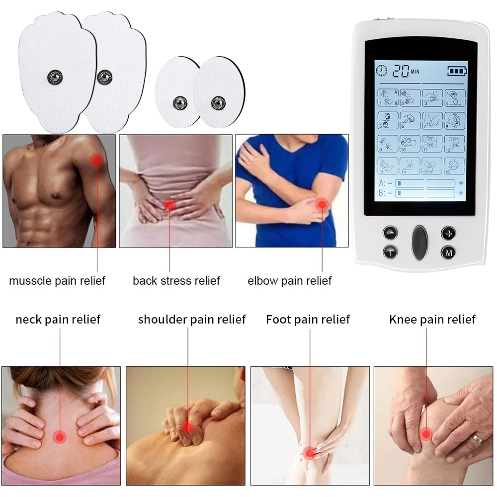 16 режимов, массажер для тела, устройство для облегчения боли в мышцах, двойной выход, массажный электростимулятор, физиотерапевтическая машина