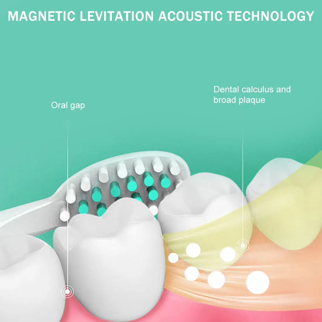 Особенности1. Профессиональная электрическая зубная щетка для чистки зубов, умное напоминание, таймер на 2 минуты.2. Пять режимов очистки, три сильные стороны, звуковая вибрация, многоточечная Бесшумная и амортизирующая, мощная очистка. Для различных групп людей, таких как новички, чувствительные зубы, сжимающиеся зубы, зубы, беременные женщины и т. Д.3. 3D Трехмерная дуговая поверхность щеточной головки, высокая плотность tufting и округление обработки. Импортированный из Германии звуковой двигатель, реализующий истинные магнитные колебания левитации, забота о здоровье зубов, высокая частота вибрации 45000 в минуту4. USB зарядка, светильник, портативный5. IPX 7 водонепроницаемость, весь корпус можно мыть6. Два способа питания: Тип батареи (без аккумулятора), зарядка через USB. (В зависимости от вашего выбора)