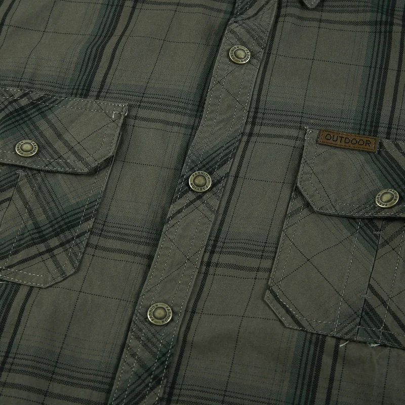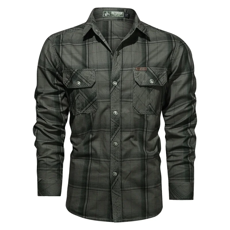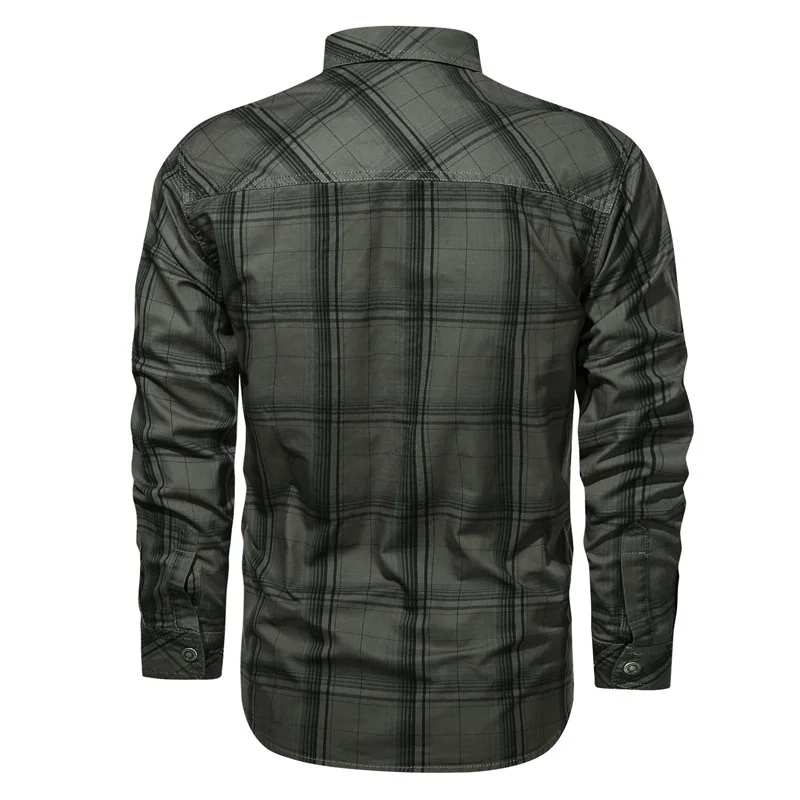 Рубашка мужская в клетку, чистый хлопок, в стиле милитари, Классиче...