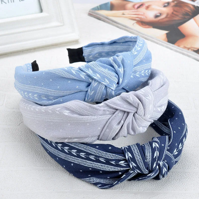 Ободок для волос женский с цветочным принтом, широкая тканевая повязка на голову с перехлёстом, с бантом, аксессуар на голову