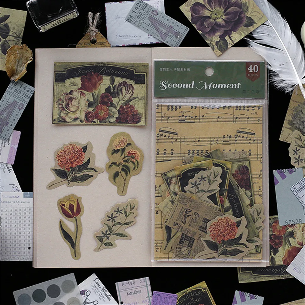 40 шт., ретро билет, растения, материал, бумага, дневник, планировщ...