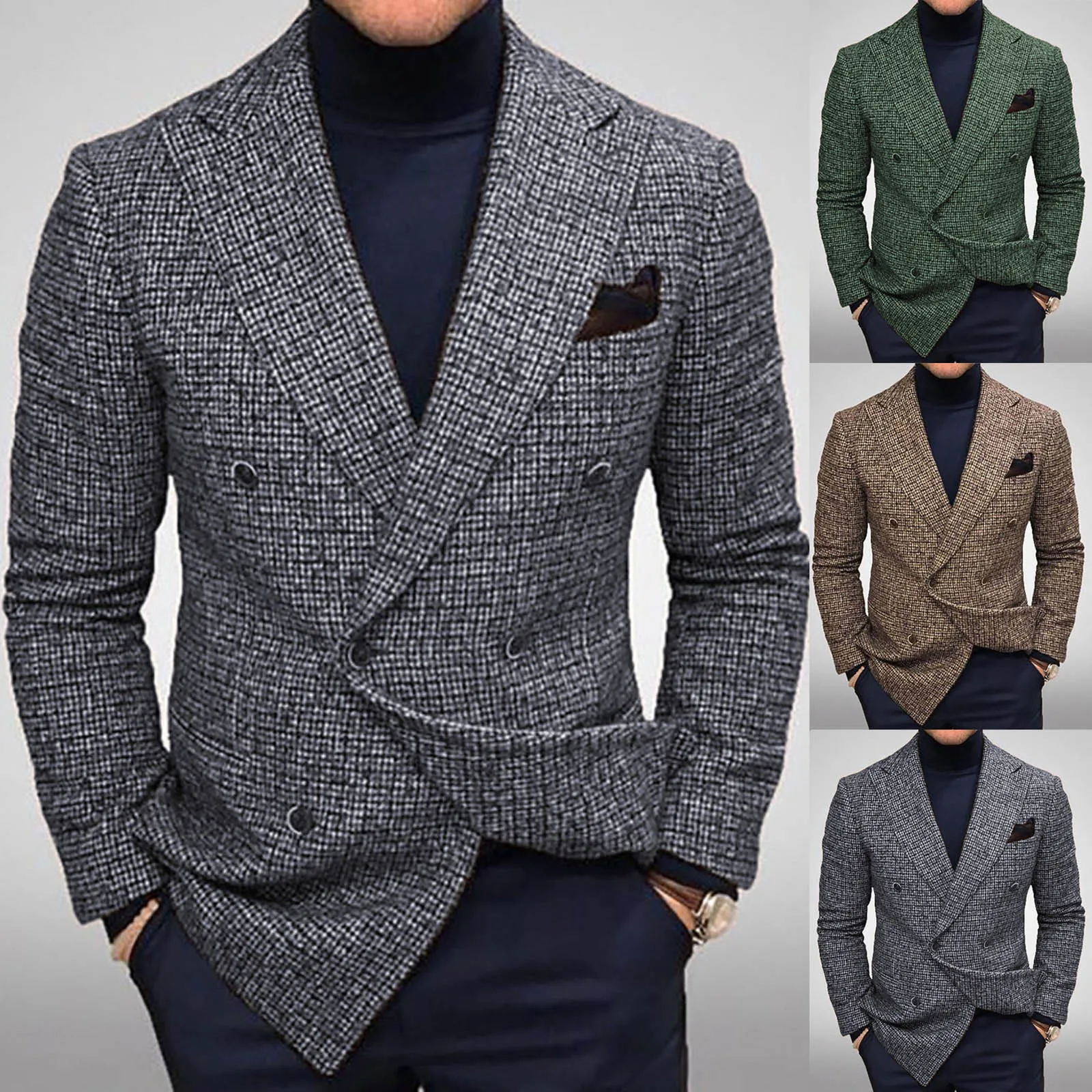 Классический мужской блейзер, деловой костюм, мужская приталенная одежда, мужской блейзер в клетку, мужская куртка, Мужская одежда на осень