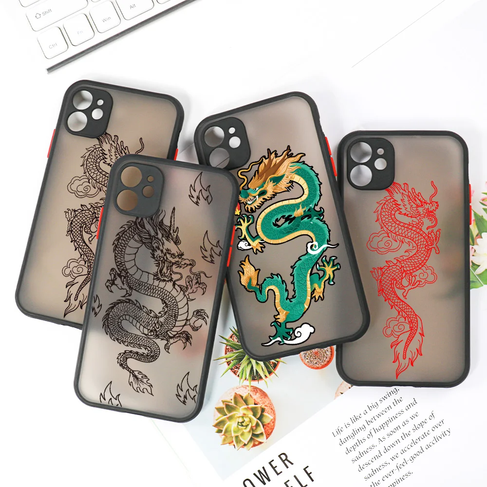 Прозрачный чехол с драконом для iPhone 13 Pro Max, Роскошный чехол для iPhone 11 12 Mini 7 8 Plus 6 6s XR SE 2020 X XS SE 2020, Матовые чехлы