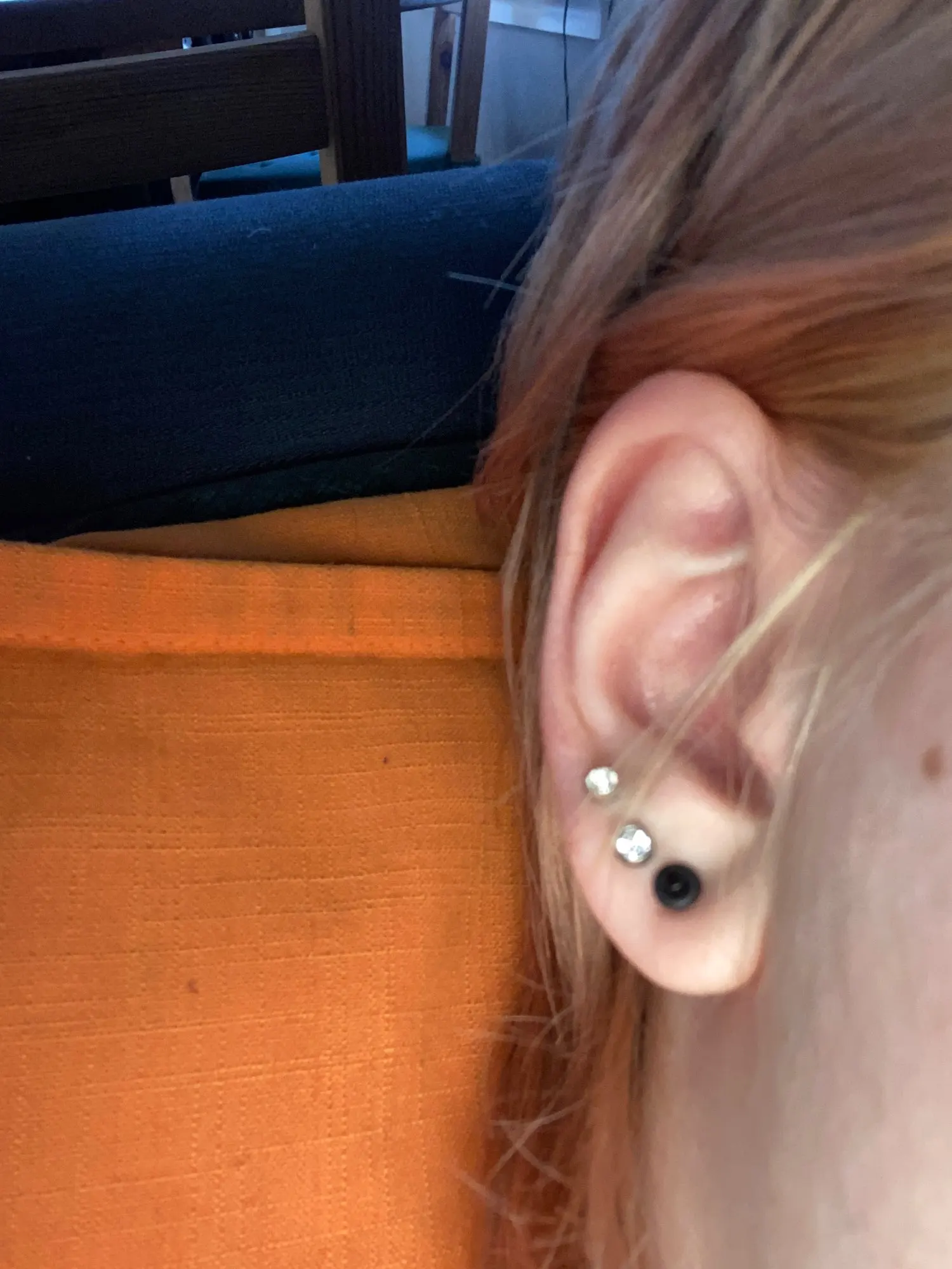 После прокола выпал камешек из одной сережки. Стержень тонкий, тяжело потом вставить сережки с толстым стержнем.
