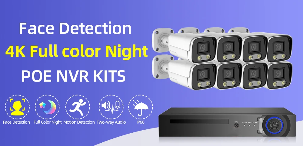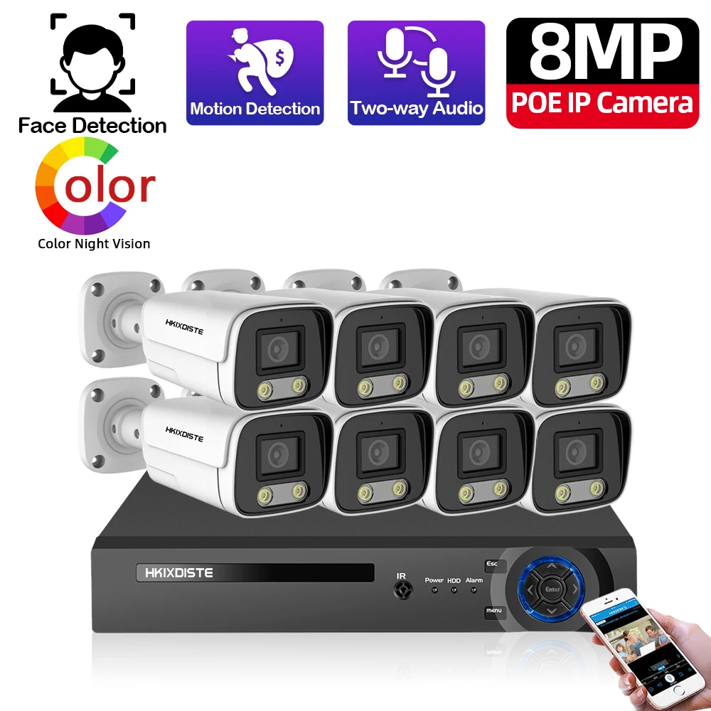 Новая система видеонаблюдения 4K Ultra HD 8 МП с функцией распознавания лица, H.265, NVR с питанием по POE, 2-полосная аудиосвязь, комплект уличных камер наблюдения