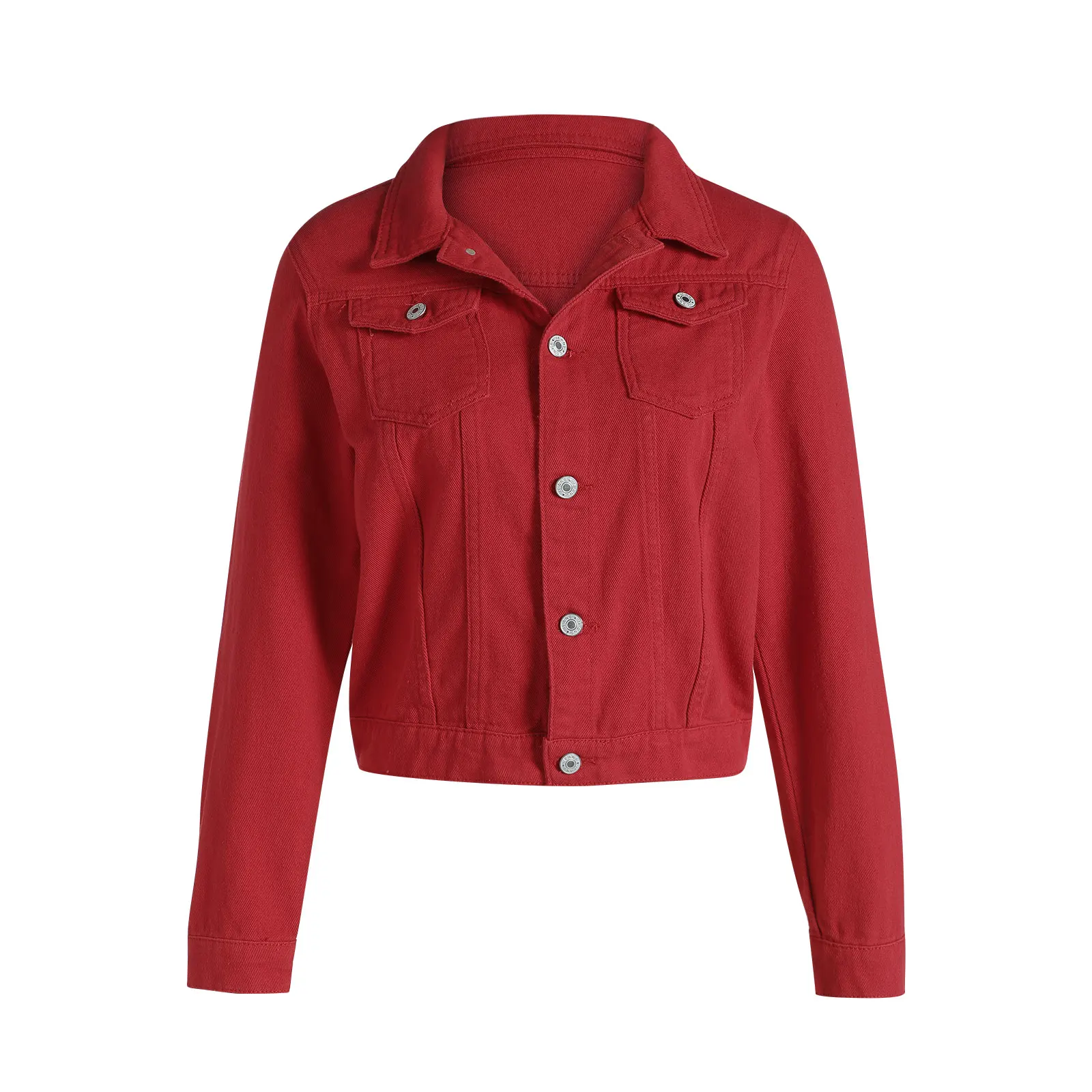 Модная женская однотонная джинсовая куртка, Женская Весенняя однобо...