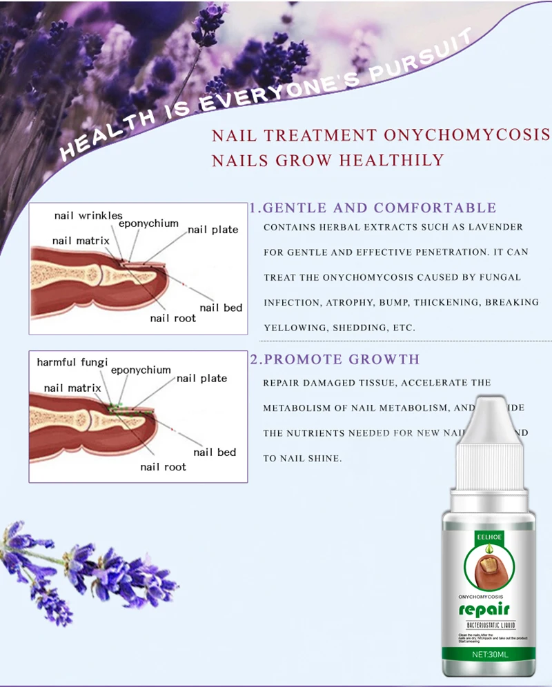 Эффективность: используется для ухода за растрескиванием ногтей, шероховатостью, обесцвечиванием и шелушением, вызванными грибком ногтей, и способствует здоровому росту ногтей.