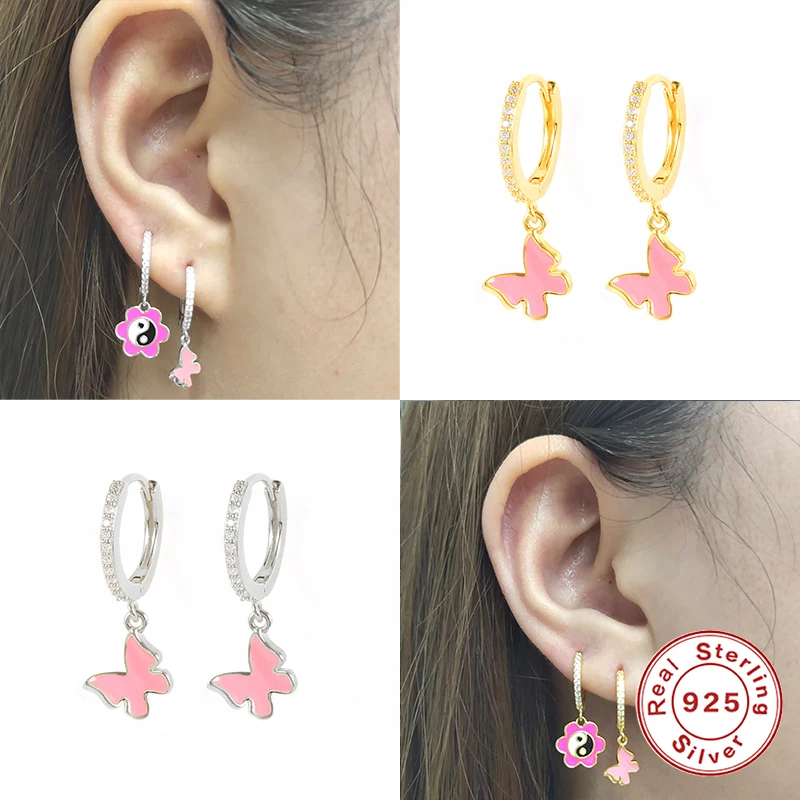 Женские циркониевые серьги-кольца Aide Dripping Oil Heart Eye Smile Face Pendientes plata 925 пробы, серебристо-розовые