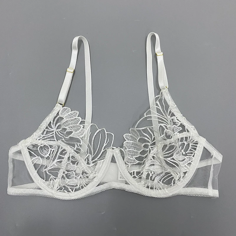 Женский комплект нижнего белья с цветочной вышивкой, тонкий прозрач...