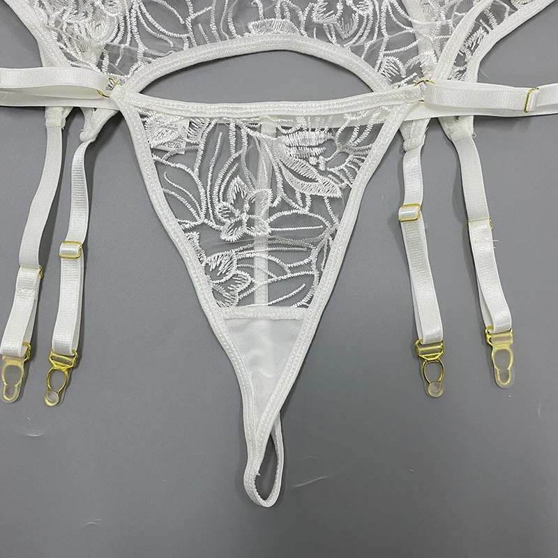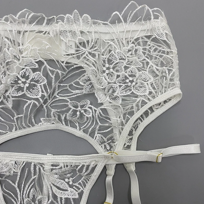 Эротическое белье с цветочной вышивкой, женское сексуальное нижнее белье, комплект с подвязками, Прозрачное нижнее белье, эротическое нижнее белье